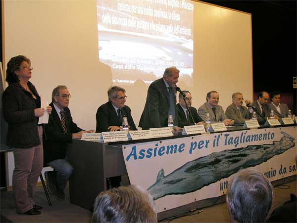 dell'incontro: Tagliamento: Cittadini, Comuni, Provincie, Regione e Ministero insieme per una scelta condivisa, in difesa della sicurezza delle persone e la salvaguardia dell'ambiente.