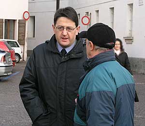 Il segretario di R.C. Gian Luigi Bettoli legge lo slogan e