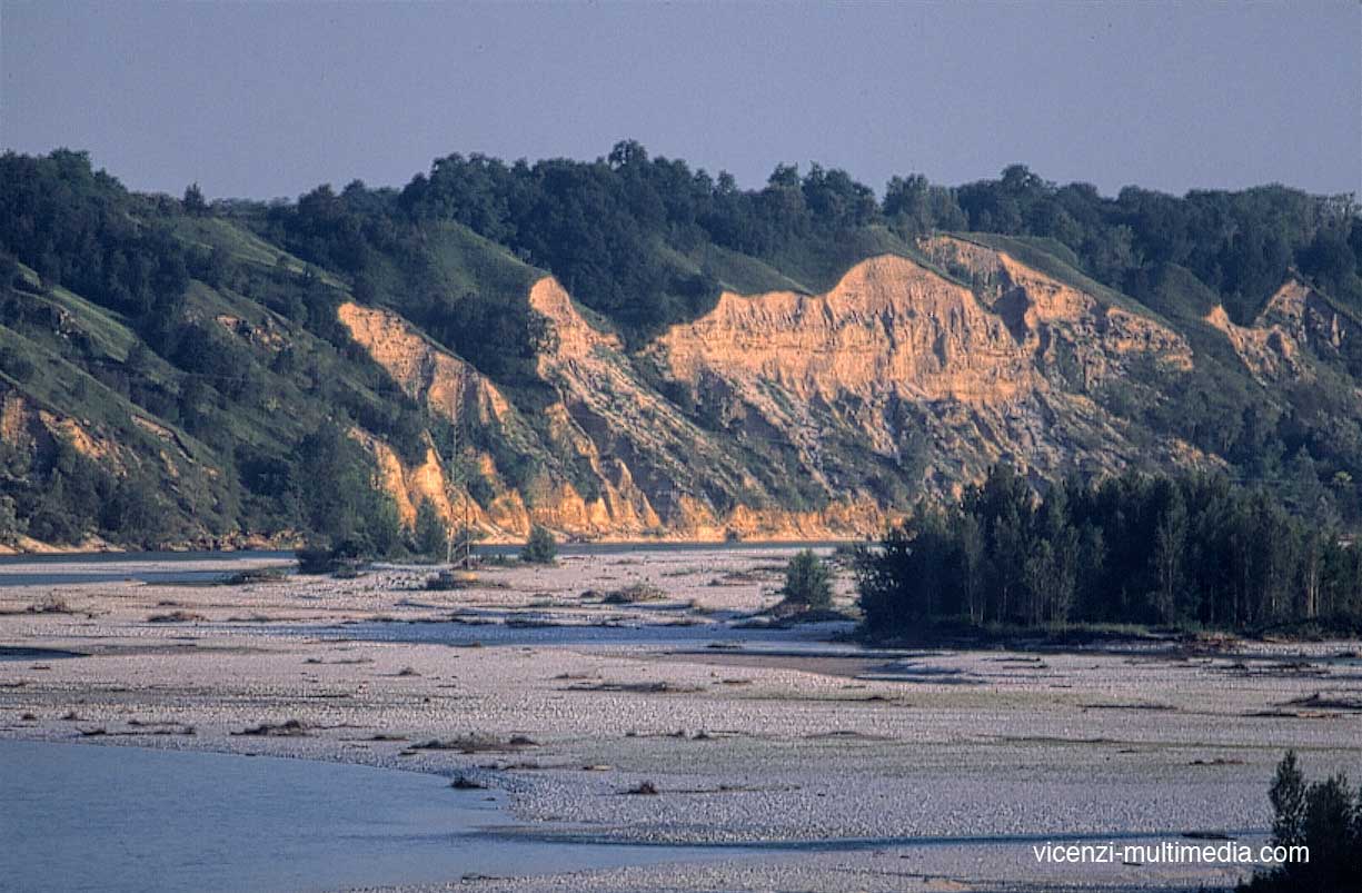 Particolare paesaggio erosivo della sponda del Tagliamento, erosione piuttosto vecchia sopra cui si vuole costruire un mostruoso argine in cemento e pietra a protezione della sponda.
