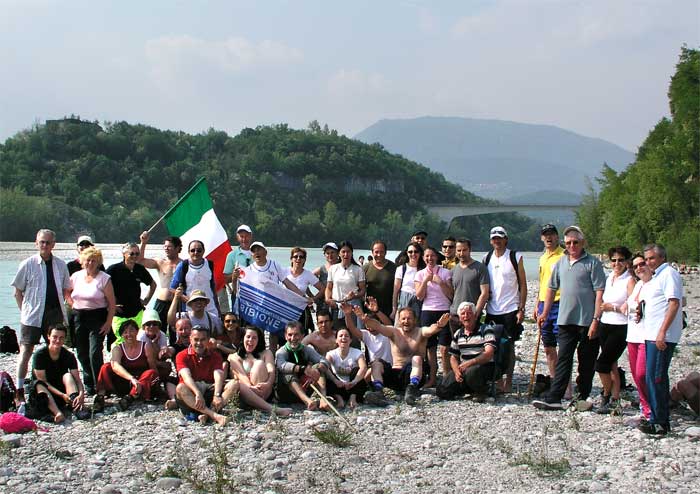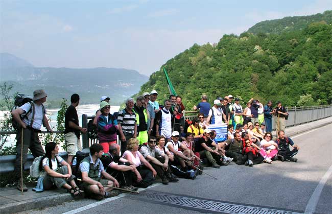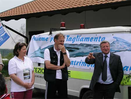 Una marcia lunga 90 chilometri in difesa del Tagliamento90 chilometri a piedi da San Michele al Tagliamento fino alla stretta di Pinzano per raggiungere dalla bassa friulana, i luoghi incantati del fiume dove dovrebbe essere realizzata le faraoniche opere di cementificazione per l'intercettazione delle acque di piena e la prima cassa di espansione. Un lungo festoso serpentone di circa 50 camminatori capeggiati dal Vicesindaco di San Michele attraverso una marcia durata tre giorni, due notti e per un percorso di oltre 90 km, ha voluto così segnalare l'attenzione e l'importanza riservata da parte delle comunità rivierasche della bassa alla difesa del "Tiliment". La marcia si è conclusa sul ponte di Pinzano con l'incontro e stretta di mano con l'Associazione di "Assieme per il Tagliamento"domenica scorsa 7 maggio 2006 con un gesto di rilevante significato simbolico in un momento di grande patos, commozione e gioia: l'immersione delle mani e dei piedi nelle acque del grande Fiume friulano:una sorta di rito collettivo cui si è unita la delegazione di "Assieme per il Tagliamento" che ha voluto accogliere "gli amici della Bassa per celebrare assieme il rito propiziatorio utile a scongiurare con un po' di scaramanzia la minaccia di quell' immenso cantiere che se aperto, alla conclusione dei lavori renderebbe per sempre irriconoscibile uno degli scorci naturali più pittoreschi e di maggior significato per la coscienza collettiva della nostra Regione. Attraverso la voce del Presidente Franca Pradetto l'Associazione "Assieme per il Tagliamento" ha voluto personalmente ringraziare la delegazione per l'importantissima iniziativa; e ha proposto alle comunità rivierasche presenti un gemellaggio in difesa del Re dei Fiumi