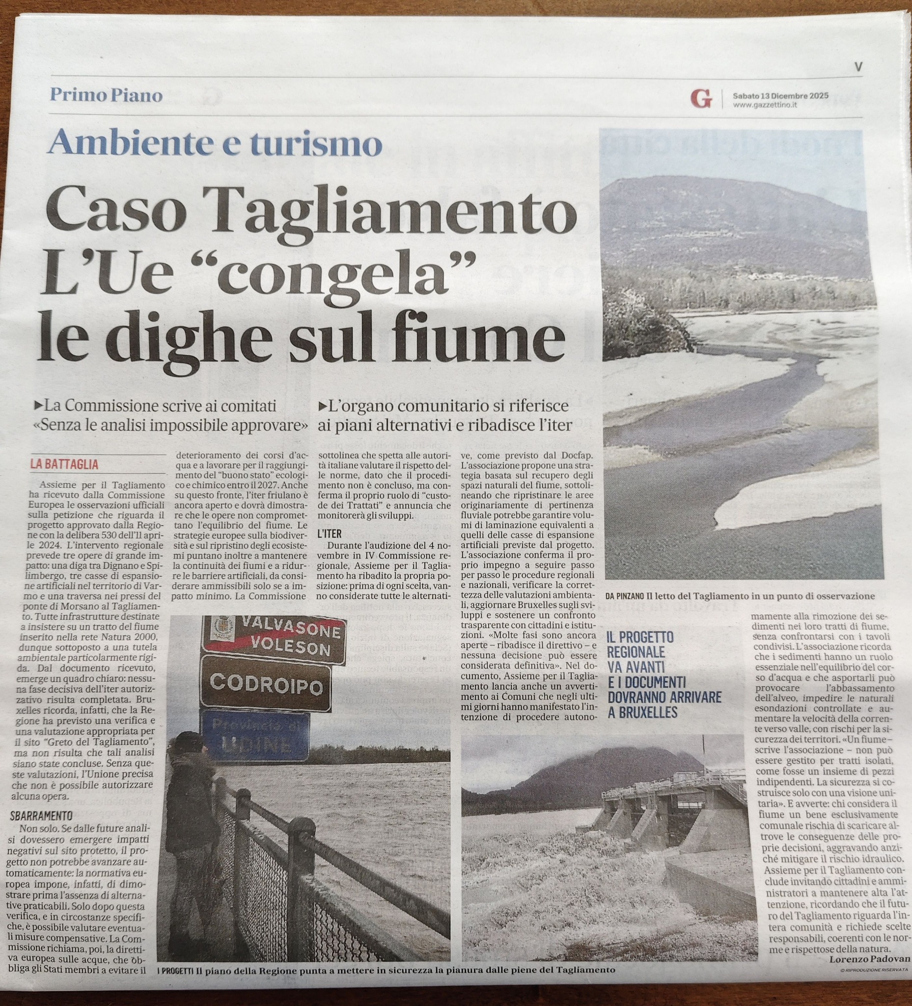 vedi Interrogazione parlamentare: Rischi per l'ecosistema del fiume Tagliamento